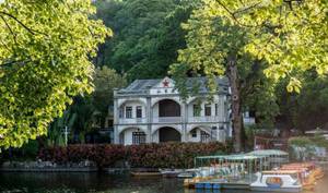 涵碧楼已经有98年的历史,这座两层小洋楼正面正上方的“涵碧楼”三字是郭沫若题写的,楼前有一棵雄壮挺拔的木棉树,据说已经400多岁了。