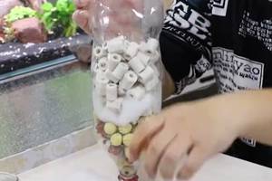 准备材料:塑料瓶、细菌环、陶瓷环、陶瓷粒、过滤棉、剪刀