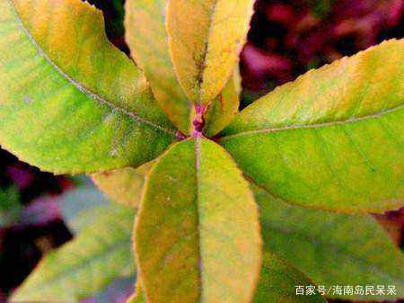 主要是缺乏流动性的肥料如氮肥、钾肥等,新梢营养不足,老叶中储存的营养回流新梢造成的。