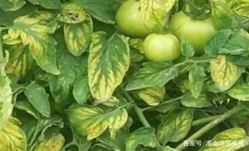 3、病毒病引起:病毒病发生后,营养向生殖生长转移,出现花打顶、小果等,造成营养生长弱化,新梢变黄、叶片黄化变小、卷曲、出现绿点等。