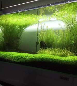 在有阳光的房间摆放鱼缸,最好在早、晚阳光不足时,各接受1小时左右的阳光照射;如果在没有阳光的房间摆设鱼缸,应该采用灯光照射水草,用60瓦的白炽灯泡或者40瓦日光灯每天照6小时。光照可使热带鱼生长更快,使鱼体更加绚丽多彩。