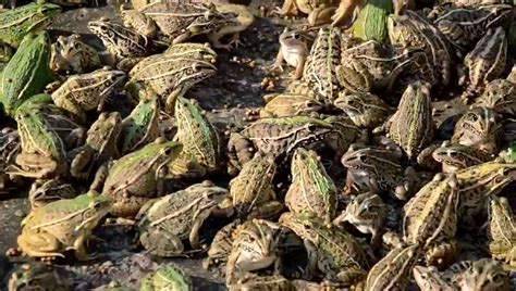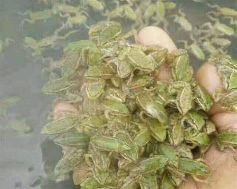 青蛙养殖的主要品种为黑斑蛙,由于其具有摄食活饵的特点,传统养殖中均需培育蝇蛆、黄粉虫、蚯蚓等进行投喂,工作强度大,产量低,养殖成功率不高。近三年来,随着可摄食静态饵料的青蛙品种出现,青蛙养殖可全程投喂全人工配合饲料,养殖产量一路走高,亩产可达1500——2500公斤,青蛙养殖产业迅速扩大。