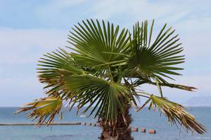 开在棕树的叶子和树杆的相接处,一片叶子下就有一个花苞.经常开橙黄色,米粒儿一样的棕树花,完善后的结红彤彤小果子,一串串的格外醒目。棕树花仍在花苞期的情况下,外观来看如同一条鱼,外边裹着逐层的相近笋衣样的机壳,里边是密麻麻小花苞,就鱼籽一样。
