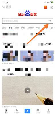 1、打开手机百度app,点击搜索栏右边的相机标志,点击进入。