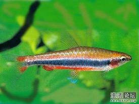 原产地区(国家) 南美洲的圭亚那。又名红光灯鱼、玻璃霓虹灯鱼。体形和习性 鱼身长4~5厘米。体侧中部从头至尾部有一条红色宽条纹。要求弱酸性软水,PH6~6.5,水温22~26度。箱中宜铺砂植草,光照条件好。喜食鱼虫`水蚯蚓等活饵料,也能兼食人工干饵料。性情温和活泼,喜群居。