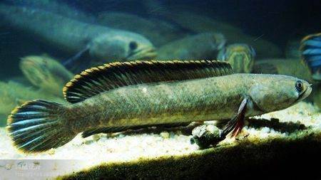 体黑色或墨绿色,腹部灰黑色。奇鳍边缘暗红色或橙红色,余部分淡黑色。有的背鳍、尾鳍具灰白色条纹。胸鳍略带黄色,具黑色栈纹数条。体长可达20厘米,栖息在流动快速的溪流或静止的沟渠,夜行性,可作为观赏鱼。