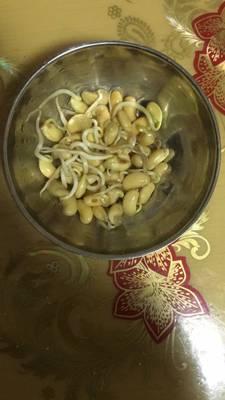 我很惊讶豆芽生长的速度!那芽长得很长的豆子已经开始变成绿色的了,青青的,已经很像平时我们吃的豆芽菜了。而且,黄豆变得更大了。妈妈说:再过一到二天,豆芽还会长的更长,豆芽的芽上还会长出“胡须”!黄豆芽是一种营养丰富,味道鲜美的蔬菜,是较多的蛋白质和维生素的来源。豆芽菜这么多的好处,以后我也要多吃豆芽!