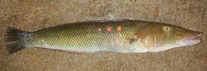 体细长,略呈圆柱形,稍侧扁,头尖,吻长,口大,能伸出,唇厚,内侧有纵褶,褶边缘呈锯齿状,颌齿1行,尖短,前端有1对大犬齿,口角无犬齿,体被小圆鳞,颊部有鳞,侧线完全,尾鳍圆形。