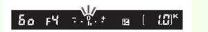 快门速度设定的太高了,以至于镜头光圈不足以调整至正确的曝光值。适当降低快门速度或提高ISO值,微触快门键,看取景器下方的OLED显示屏上的曝光指示条,调整主副指令拨盘把曝光量控制在“0”位即可(附图显示的是曝光量过0.3EV)。