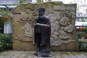 欣赏古人雕像,在售票处的主干道上,后人雕刻了6尊历史名人塑像,其中最出名的就是朱熹的雕像。朱熹是南宋时期浙江绍兴进士,著名哲学家、理学家、教育家,很多家长都会带着孩子来参观。