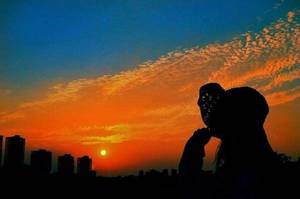 当夕阳西下,晚霞染红天际,远处的高楼身影与近处的人物模样构成完美的剪影,怎么拍都美。