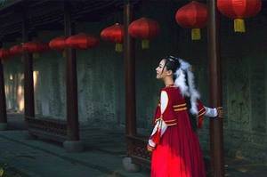 身着红衣的你静静行走在假山长廊间,或是轻抚绿叶想象这里曾经的盛况,或是翘首期盼仿佛故人将归,被记录下的时刻自带韵味。