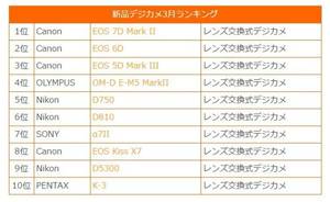 但实际情况并不令人乐观,随后的新品销量逐渐下滑。到2016年2月即大幅下滑,EOS 6D位列新品销量第七。