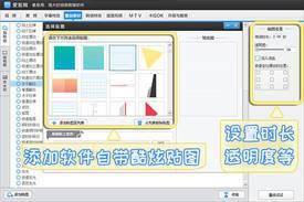 在“叠加素材”-“加贴图”面板下双击右侧的视频预览区,在弹出框中即可导入软件自带的贴图,除此之外,点击贴图框左下角的“添加贴图至列表”还可以导入个人本地图片。