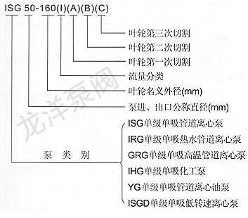 下面以ISG管道离心泵为例简单的讲一下离心泵型号中各部分所表示的含义。