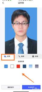 拍摄完成之后,我们可以点击【背景】更换证件照背景,下面有各种颜色的背景可以提供选择