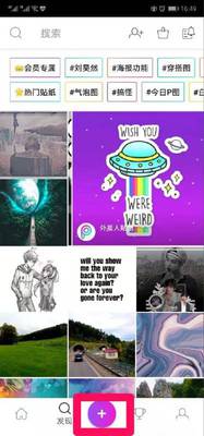 1、第一步,打开手机的PicsArt图片编辑器。点击底部的“+”号。请参考下图操作: