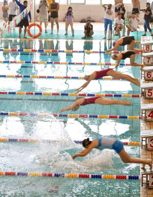 首先拍一组游泳比赛的专题,应该是各种景别的场景都要有,比赛的大场景画面,人物的特写画面,花絮等等。