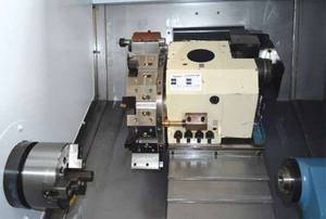 更换主轴头换刀方式时首先将刀具放置于各个主轴头上。通过转塔的转动更换主轴头从而达到更换刀具的目的。这两种方式设计简单,换刀时间短,可靠性高。其缺点是储备刀具数量有限,尤其是更换主轴头换刀方式的主轴系统的刚度较差,所以仅仅适应于工序较少、精度要求不太高的机床。