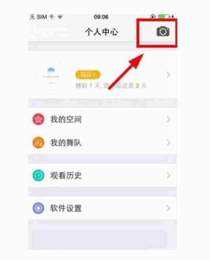 1、首先,打开糖豆广场舞,在“我的”里点击箭头所指右上角的相机位置!【回答】