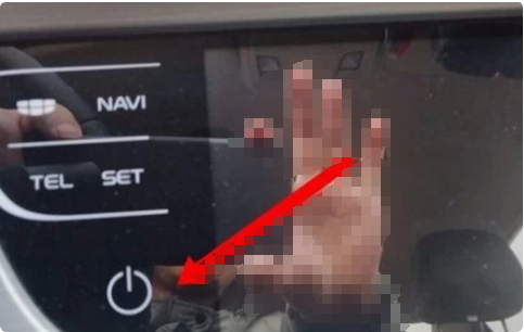 1、首先,点击汽车显示器的开关按钮,如下图所示。