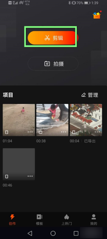 1、在手机上下载安装“快剪辑”软件,并且在手机→点击打开;