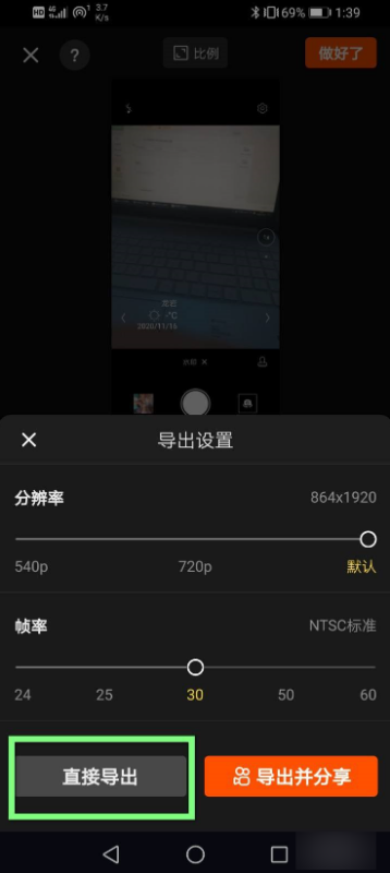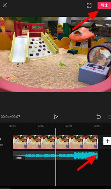 7、剪切音乐,让音乐和视频对齐,然后点击“导出”即可。