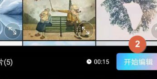 4、照片选取完成以后就会在页面底部看到“开始编辑”,这样一段长度达15秒的小视频就初步创建好了。