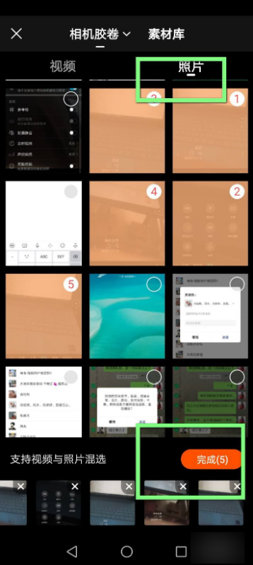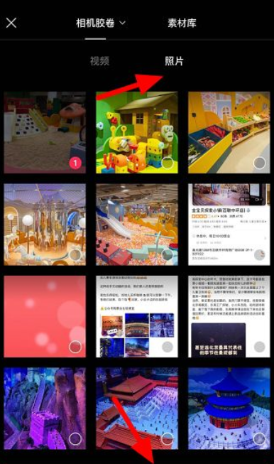 3、接下来点击下面的“图片”,这样就能看到手机本地所有图片以及照片了,点击选中要制作视频的照片即可。