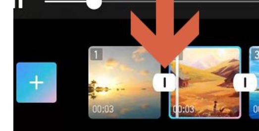 5、不过此时的图片是按照次序轮流播放的,为了让视频更加美观,我们可以点击每张照片连接处,这样可以增加转场特效。