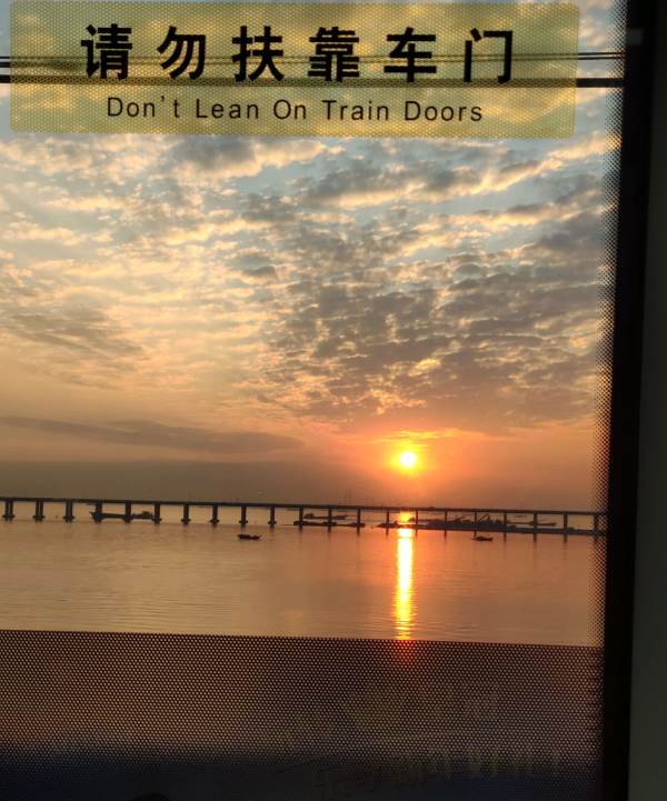 上高中的时候,每到周末回家,我都要坐地铁。沿线有一处很美的沿江大桥和海,而当日落的时候,地铁恰好经过沿江大桥。看到泛着光芒的太阳,一望无垠的海和桥,回家的喜悦也慢慢涌上心头。