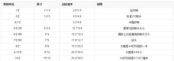 照片的尺寸通常以英寸为单位,1英寸≈2.54厘米 。X寸照片是指照片长的一边为X寸。如5寸照片的长为2.54x5=12.7cm;12寸照片的长为2.54x12=30.5cm。