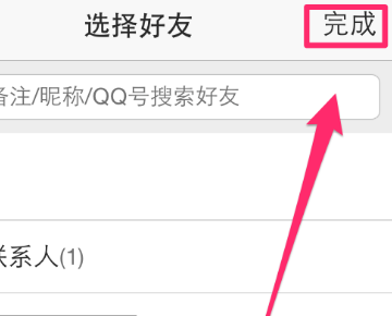 6、在自己的QQ好友列表中找到自己想要特别关心的好友,选择并找到界面右上角的“完成”按钮,点击完成操作。