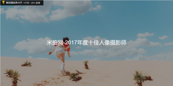 大赛介绍:此次比赛为米拍网的年度人像摄影大赛,优胜者不仅会获得丰厚的奖品,还将得到“米拍网·2017年度十佳人像摄影师”的殊荣。