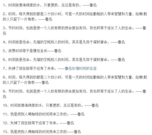 1、时间就像海绵里的水,只要愿挤,总还是有的。(鲁迅)