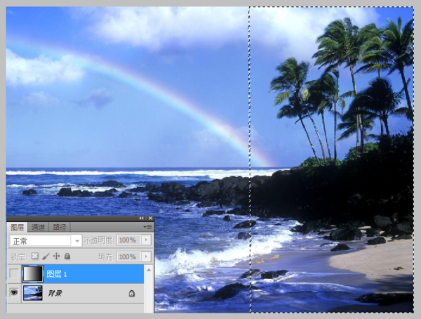 用PS把图片上偏暗的一边调成跟另一边一样的亮度,其思路是:建立一个从有到无的过渡性选区,把这个选区应用在图像上,进行亮度调整。具体方法是: