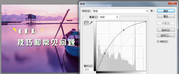 ctrl+M打开曲线对话框。上端的控制点控制亮处,下端的控制点控制暗处。