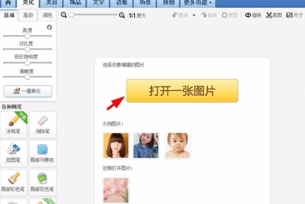 2、点击“打开一张图片”按钮,选择需要编辑的图片。