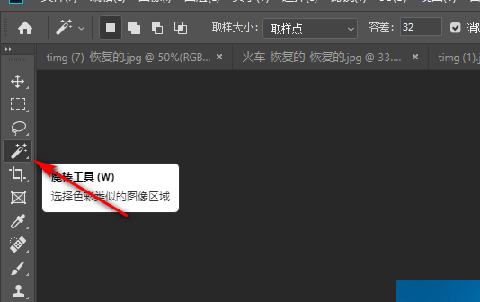 2、打开图片后,点击工具栏中的魔棒工具。