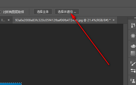 4、选中人物后,点击工具栏中的选择并遮住。