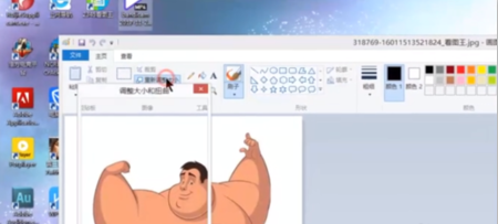 首先,选择打开图片的方式为画图,选择调整大小工具;