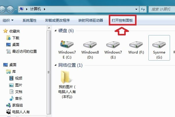 1、先使用Windows+E快捷键,调出资源管理器→打开控制面板。