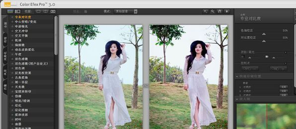 3、选择自己喜欢效果后 可以在Color Efex的界面右边选择进行微调。微调完成点击确认就会退出Color Efex界面回到PS就会看见你所选择的效果了。