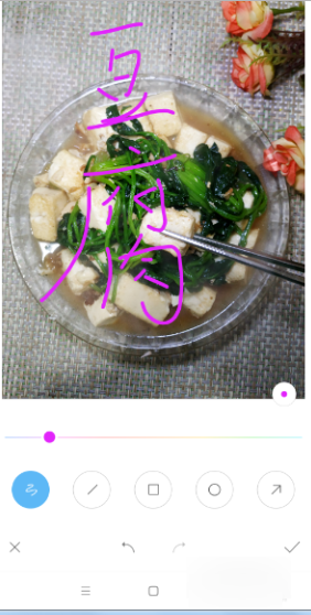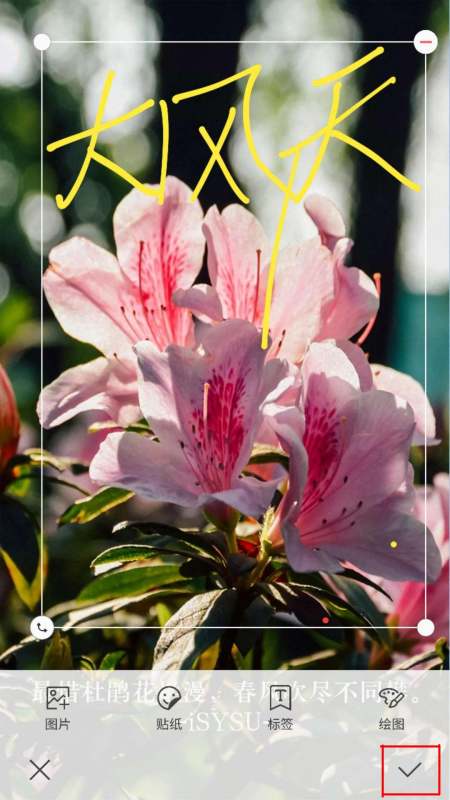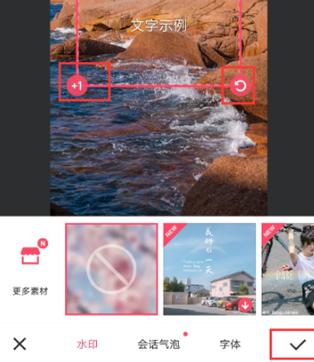 六、返回照片界面后,通过文字框角标调整文字方向与角度,然后点击右下角“√”。