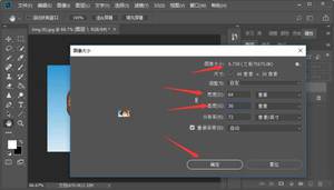 4、接下来在“图像大小”对话框中,修改图片的宽度和高度,直至图片大小小于20KB即可,然后点击“确定”。