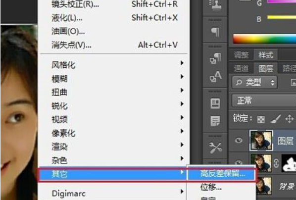 1、首先把照片拖进ps,按ctrl+j复制图层。点击上方的滤镜,点击其他。