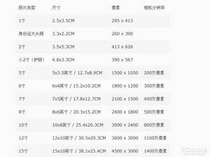 下面是不同尺寸的照片,相应的照片尺寸和像素 (以图片分辨率300像素/英寸计算):