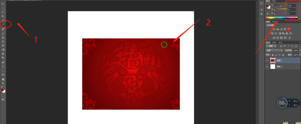 打开PS,将这个图片放进PS里面,使用拾色器取色,就可以获得该中国红颜色的RGB值。