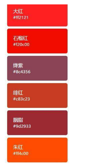 中国红(又称绛色)是三原色中的红色,以此为主色调衍生出中国红系列:榴红、枣红、朱砂红、陶土红、铁锈红、樱桃红、胭脂红、绯红和橘红。