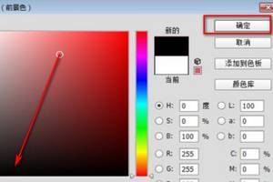 3、弹出拾色器,点击前景色,在拾色器中点击黑色区域,红框处变为黑色后,点击“确定”。